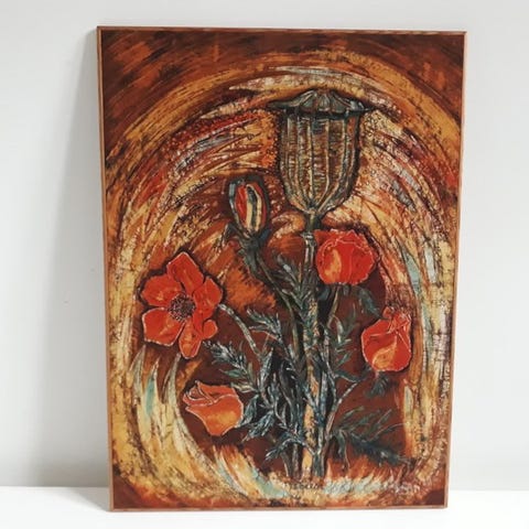 Syet billede, Hjemmelavet, Flot håndsyet stramaj billede, nok syet i 1970erne. Indrammet og måler 41 x 50 cm.