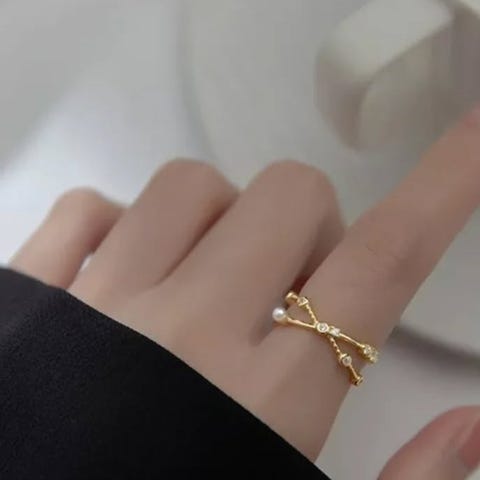 18- forgyldt ring i unisex-design med krystaldetaljer. Ringen er åben bagtil, så størrelsen kan justeres. Fronten har rundt motiv med dekoration og små krystaller rundt om. Velegnet som statementring til både hverdag og fest for alle køn.