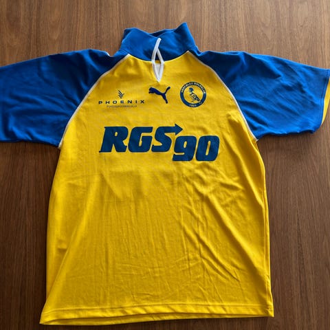 Herfølge Boldklub fodboldhalstørklæde i blå og gul. Tørklædet har klubnavn og logo vævet ind i stoffet og er egnet til brug på stadion, derhjemme eller som samlerobjekt for fans af Herfølge Boldklub.