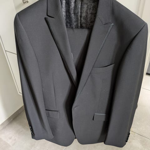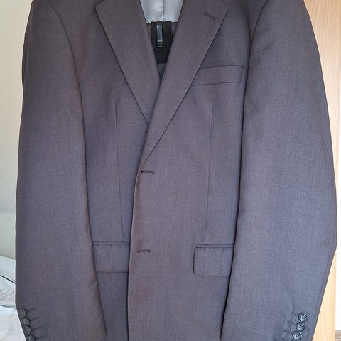 Jakkesættets farve er en blanding mellem beige/sand/guld/brun. Jakkesættet er i super stand, det er kun brugt en gang.