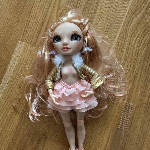 Flotte brugte Rainbow High-dukker med farvestrålende hår, stilfuldt tøj og masser af tilbehør som kasser, tasker, sko og smykker. Dukkerne er i god stand og perfekte til samlere eller som gave til børn, der elsker mode og kreativ leg.