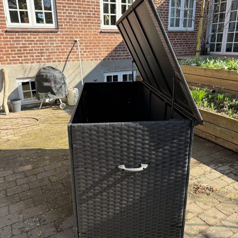Sælger en solid og rummelig opbevaringskasse til hynder til havemøbler. Perfekt til at beskytte dine hynder mod regn, snavs og fugt, så de holder sig pæne længere.