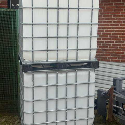 Plastiktanke velegnede til opbevaring af væsker eller som beholdere i landbrug, have eller på byggeplads.