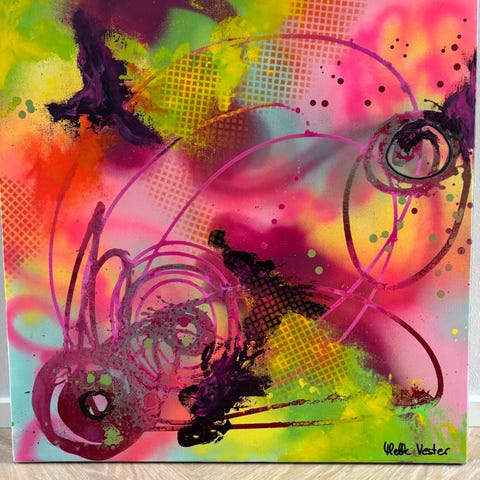 Flotte moderne malerier af Mette Vester. Mål 30 x 35. Hedder “Det ydre rum 1 & 2”. Helt som nye - sælges grundet flytning. Pris pr stk kr 1200,-