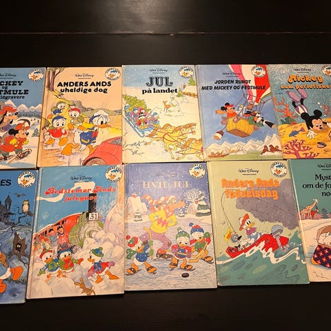 Disney Walt Disney børnebøger sæt med 4 hæfter med motiver fra Anders And-universet. Sættet omfatter fire illustrerede billedbøger/hæfter på dansk med farverige forsider og tegninger af kendte figurer som Anders And, Rip, Rap og Rup samt andre klassiske Disney-figurer. Velegnet som læsning og højtlæsning for børn eller som samlerobjekter for Disney-interesserede.