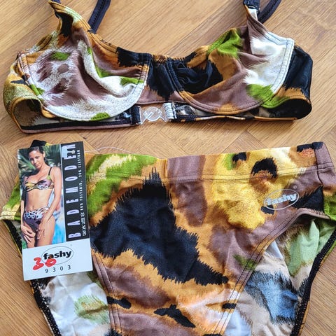 Super flotte vintage/retro bikinier. Fra 80/90'erne. Aldrig været brugt. Den ene er str 36/38 den anden er str 40.