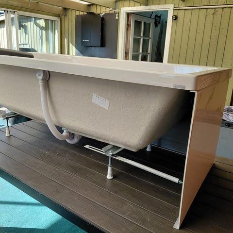 Gustavsberg badekar i hvid. Rektangulært kar med afrundede hjørner og bundafløb placeret centralt i den ene ende. Leveres med tilhørende hvidt understel/stel til montering. Velegnet til indbygning eller fritstående installation i badeværelse afhængigt af øvrig montering og paneler. Materiale fremstår som glat sanitetsakryl eller emaljeret overflade, egnet til almindelig brug i badeværelser.
