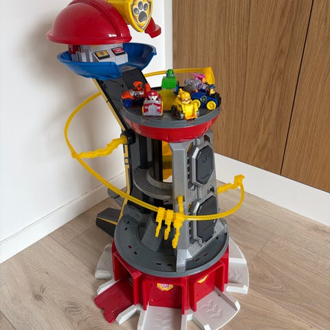 Stort Paw Patrol legetårn i plastik i flerfarvede dele. Tårnet, som er 87 cm højt, har flere niveauer med rampe til køretøjer samt forskellige legefunktioner, bla. Rutsjebane, elevator og drejbar kikkert. Der medfølger et lille Paw Patrol-køretøj og flere Paw Patrol-figurer, som kan placeres på de forskellige etager og på rampen. Egnet som rollelegssæt til børn, der kan lide Paw Patrol-universet.