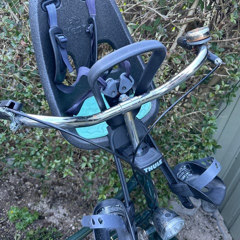 Urban cykelstol i mørk grå. Cyklen passer til børn fra 9 måneder til 6 år.