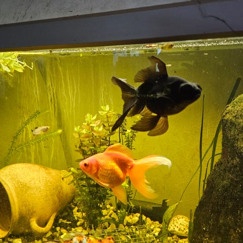 3 stk Pearlskin slørhaler i orange, hvide farver og sort plettede farver.