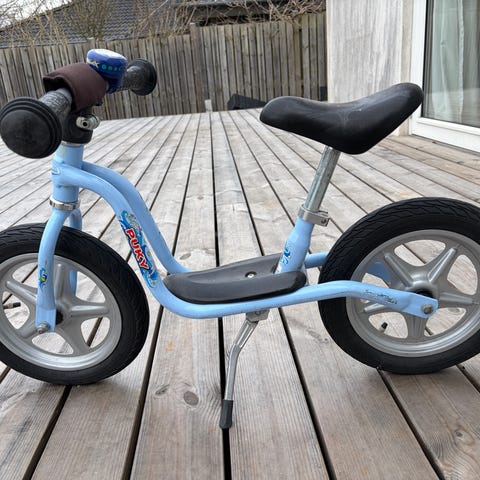 Puky løbecykel med 12" hjul i pink. Cyklen har hvidfælgede hjul med dæk, sort saddel og sort styr med styrpude. Sadlen kan justeres i højden, så cyklen kan tilpasses barnets størrelse. Egnet som løbecykel til mindre børn, der skal øve balance og koordination før overgang til almindelig cykel.