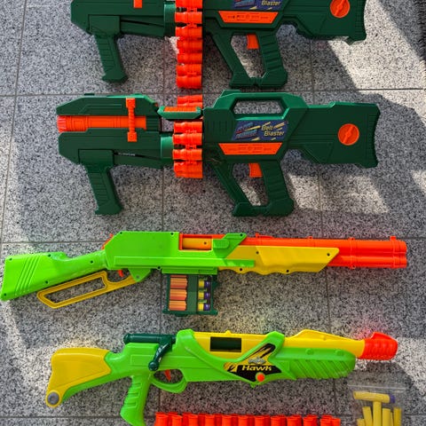 IKEA legetøjsgevær i plastik i blå og orange farver. I form som en shotgun Gevær Geværet er udformet som et legetøjsvåben med skulderkolbe, forgreb og magasinlignende del. Egnet som legetøj til børn, fx til leg både inde og ude. Fremstillet i hård plast med afrundede kanter. Og en der man kan åbne for at se inden i hvis skud sidder fast