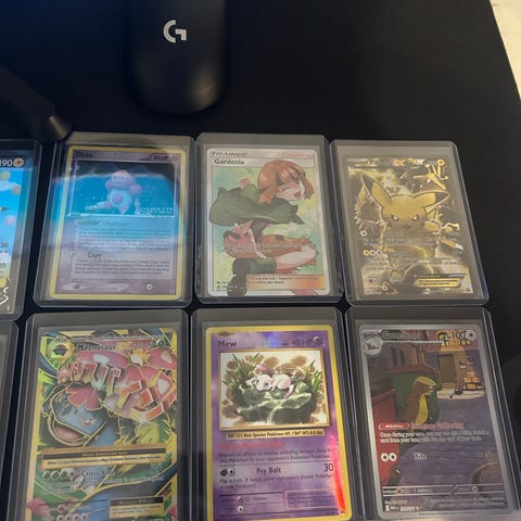 Pokémon samlekort lot med blandede kort, herunder flere holo- og full art-kort. Kortene stammer fra forskellige serier og udgivelser og viser forskellige Pokémon-figurer og trænere. Egnet til samlere eller som udvidelse af en eksisterende samling. Antal, specifikke serier og årgange fremgår ikke præcist af billederne og kan evt. afklares med sælger.