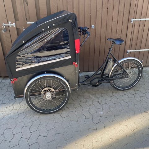 Den har fået opdateret eldelen med nyere model skærm, controller og batteri. Selve cyklen er ældre af dato. Kalechen er fra 22.