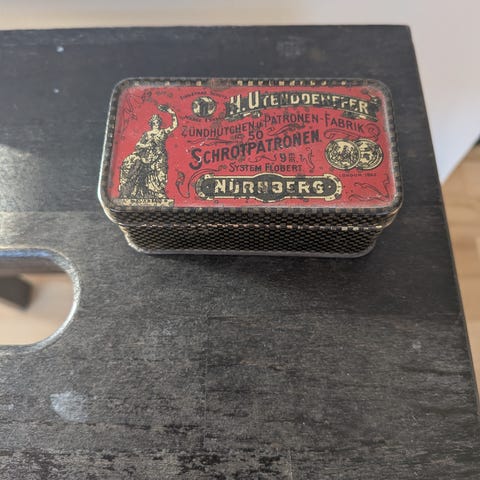Vintage Morgan Brødrene Braun metalæske med originalt tobakspapir.Låget er rødt med guldtryk og logo, indersiden er i messingfarvet metal, og bunden fremstår i metal med patina. Æsken kan anvendes til opbevaring af småting eller som samlerobjekt.