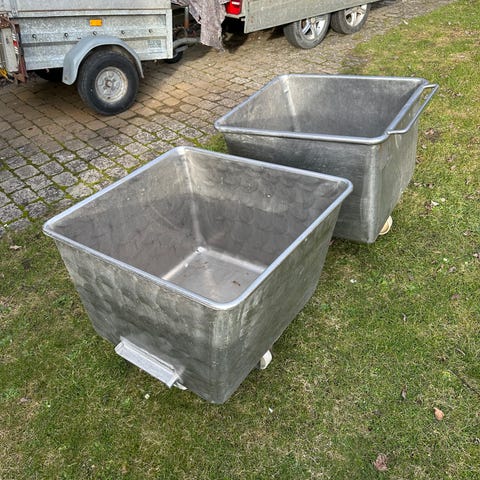 Rustfri beholder/kar med afløb på ben.