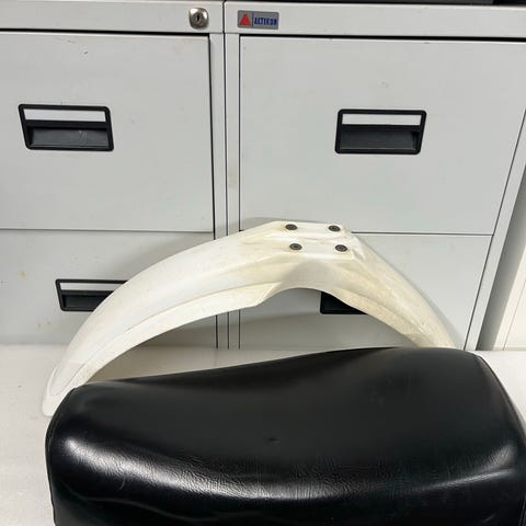 Motorcykelsæde i grå farve. Sædet er udformet til to personer med hævet bagsæde og polstrede siddefelter. Egnet som reservesæde eller udskiftning på en kompatibel motorcykel. Mål og præcis modeltilpasning er ikke angivet og bør kontrolleres før montering.