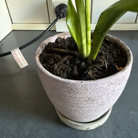 Grøn stueplante i zinkpotte