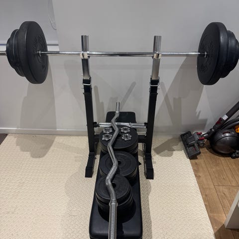 Jeg sælger dette komplette sæt til bænkpres og vægtløftning.