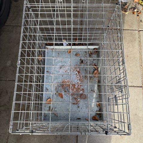 Sæt med hundeudstyr bestående af et metalbur, en træseng og en lukket hundehule. Buret er i sort metal med aftagelig plastbakke i bunden og gitterlåger foran og i siden. Træsengen er hvidmalet med lameller i bunden i naturtræ. Den lukkede hundehule er kugleformet i gråt filt-lignende materiale med åbning i front og mørkt indvendigt. Egnet til mindre hund. Velegnet til brug indendørs som sove- og hvilepladser samt som transport- eller opholdsbur.