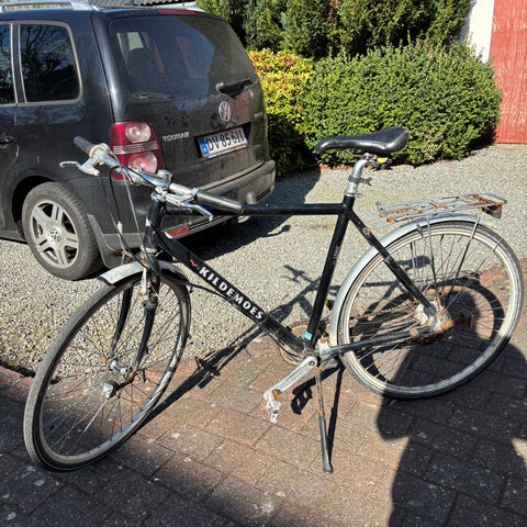 Kildemoes herre hybridcykel i str. L med 28" hjul. Cyklen har klassisk herrestel og er egnet til hverdagskørsel og pendling. Stellet er lilla, og cyklen er udstyret med bagagebærer og skærme. Hybridtypen kombinerer egenskaber fra city- og turcykler og giver en oprejst og komfortabel kørestilling til en mandlig rytter.