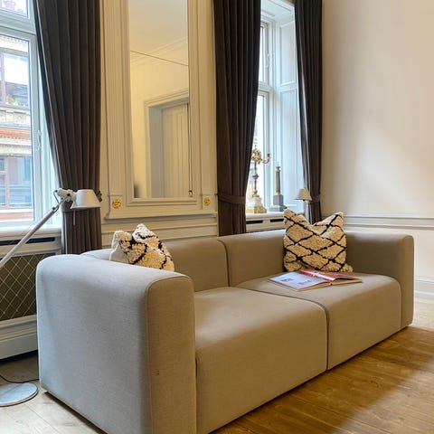 En usædvanlig elegant og smuk luksus-sofa, der passer perfekt til f.eks. både den store elegante og stilrene funkis Hellerup-villa og den imponerende 7-værelses Østerbro-lejlighed med både stuk, profilerede fløjdøre og høje vægpaneler.