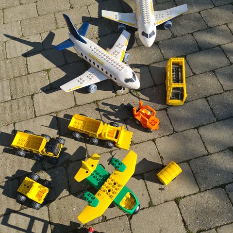 Desuden en masse tilbehør og øvrigt DUPLO som endnu ikke er prissat. F.eks. transportbånd til bagage til flyet, lufthavnstårn, bilbane med biler, en masse dyr, figurer og køretøjer og klodser nok til at bygge en tårn med spir fra gulv til loft.