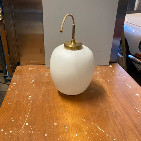 Smuk Kina pendel designet af Bent Karlby for Lyfa. Det er en stor udgave. Fremstår uden skår dog kan messing bund og top nok klare en opfriskning.
