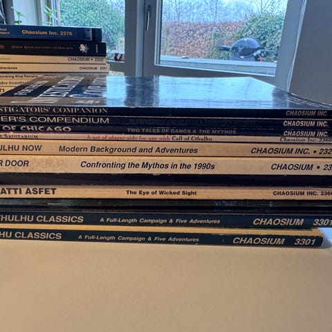 De første 5 bøger / tools. Generelt som nyt, men enkelte med lidt spor. De er noteret nedenfor. Bytter gerne med Call of Cthulhu / Delta Green / Trail of Cthuhu etc.