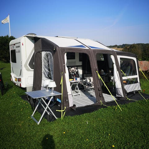 Forteltet er et oppusteligt luftfortelt, hvor luftkanaler erstatter traditionelle stænger. Det monteres på campingvognens skinne og giver et ekstra opholdsrum foran vognen. Modellen har store vinduer i sider og front, som giver godt lysindfald og udsyn. I taget ses klare felter, der fungerer som ovenlys.