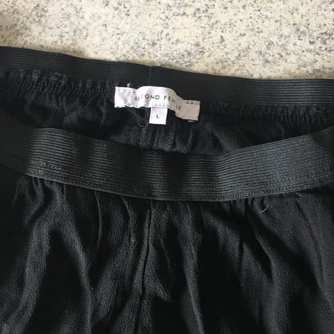 Second Female bukser til kvinder i str. M. Bukserne er gule og fremstillet i polyester. Modellen har vid ben og elastik/lukning i taljen. Stoffet har et let blankt udtryk med diskret mønster. Velegnet som hverdags- eller festbukser afhængigt af styling.