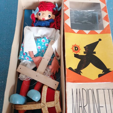 Flot scene til Dukketeater fra Kasper Teater I komplet æske. Klar til udpakning og at blive spillet med hvad end det er hånddukker Eller Marionetdukker