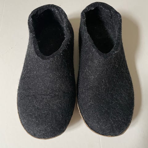 Mørkebrune “ruskinds” slippers sælges