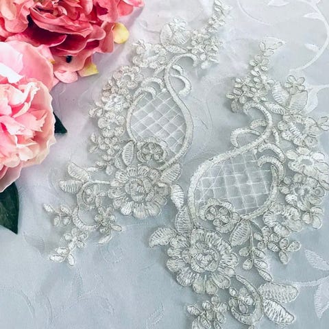 blonde krave, blondekrave, chiffon, hvid, smuk, fin, måler 40x22 cm. fast pris