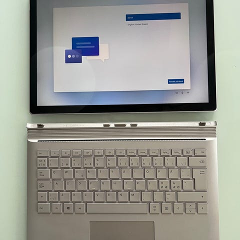 Microsoft Surface Book 2 bærbar computer / laptop i 2-i-1 design med aftagelig skærm, så den kan bruges som både laptop og tablet. Windows 11 pro, Intel Core i5-7300U, CPU @ 2,60 GHz, 8 GB ram / 128 GB lager. Inkl. original Surface oplader.