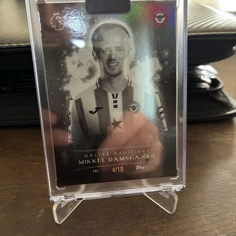 Panini DBU Legends fodboldkort med Michael Laudrup. Samlekortet viser spilleren i landsholdstrøje på forsiden og har statistik- og ikonoversigt på bagsiden. Kortet er en del af DBU Legends-serien fra Panini og er egnet til samling eller bytte blandt fodboldkort-samlere. Kan afhentes i Horsens, ellers sender jeg den gerne, på købers regning (DAO 45kr).