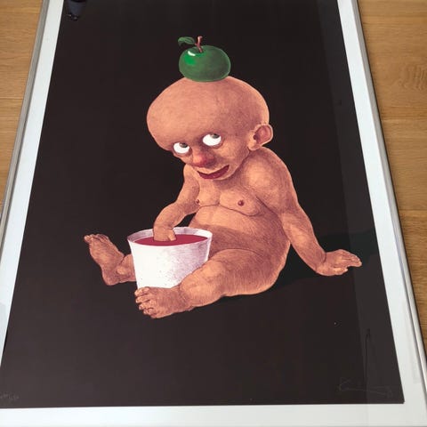 Ønsker at sælge disse to fantastiske Michael Kvium litografier da jeg ikke har haft dem oppe og hænge et stykke tid. De begge er indrammet i en mørkebrun wenge træramme med museumsglas. Værkerne sælges kun samlet.
