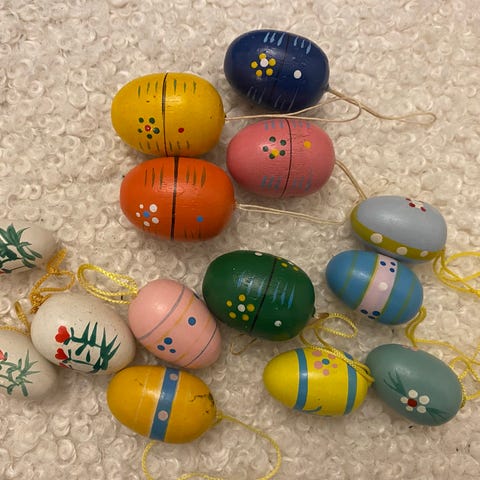 Træ påskeæg, 29 Stk. påskeæg i træ sælges samlet for 250,00 kr. De er mellem 2 og 4,3 cm lange, og er fra 70'erne.