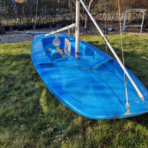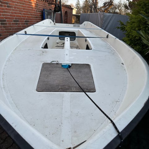 Optimist jolle. Fin til at starte interessen for sejlads og til træning. Den vinder ikke store stævner, men en billig måde at komme i gang og se om det er noget for jer. Båden er komplet med rig, sværd, ror, hængestropper, bumper(kofanger så I ikke smadre andre både), flydepose, øse, mm. Der følger cover og sejl med. Vi har en del sejl på loftet og finder et ekstra der passer godt til jeres barn. Jollevogn kan evt tilkøbes