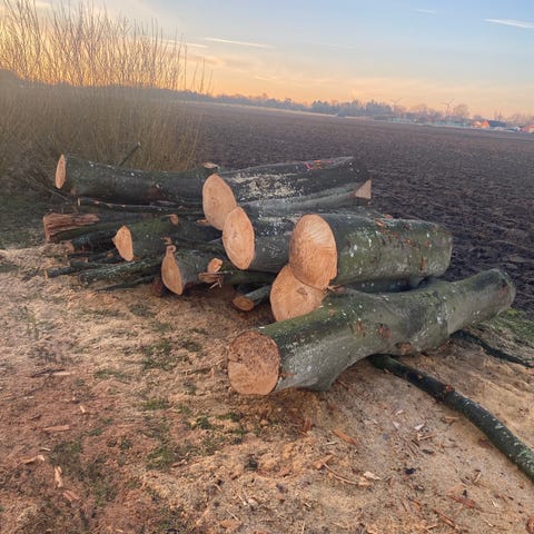 1 trailerfuld optændingsbrænde svarende til ca. 1 rummeter (2x1,2x0,4). Det er primært fyr og blandet løv.