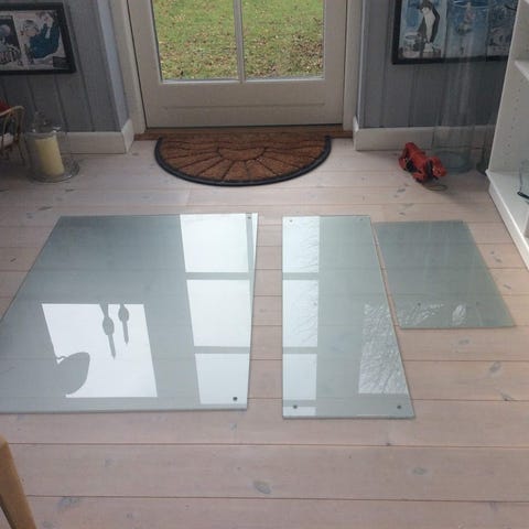 Glasplader, Har flere stk. glasplader. af forskellige str. 76x35 cm 90kr stk. 3mm Har også rund glas plade samt en stor tyk flot glas plade.