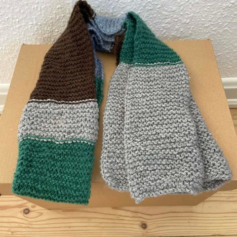 Strikket sæt bestående af halsedisse og fingerløse handsker i rosa garn med hæklet blondekant i hvid. Halsedissen lukkes med knapper foran og har dekorativt hulmønster. Handskerne har strukturstrik på oversiden og ribkanter for bedre pasform. Egnet til kølige dage som ekstra lag om hals og hænder.