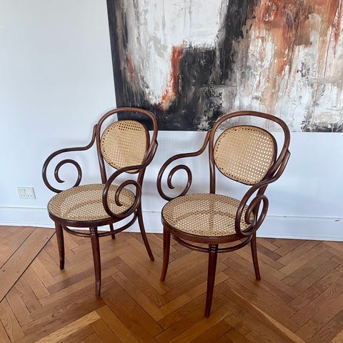 To stole i klassisk wiener-look med polstret sæde.
