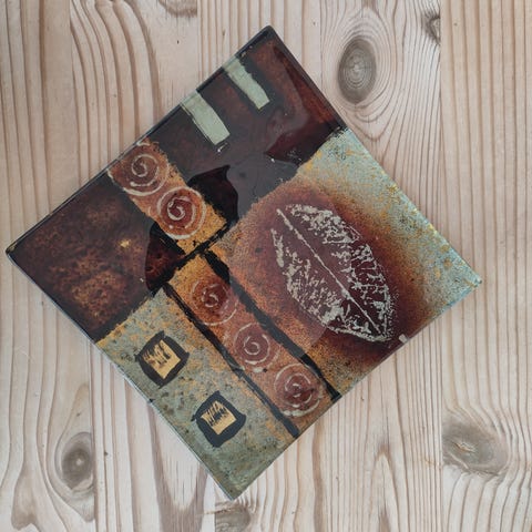 Håndlavet glasfad med abstrakt dekoration