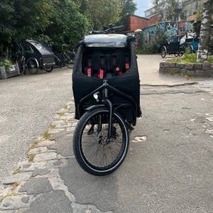 Med Shimano Deore. Mange brugsspor, men kører fint. Nyt sæde med seler. En rigtig børne-transport-kampvogn. Kom med et bud.