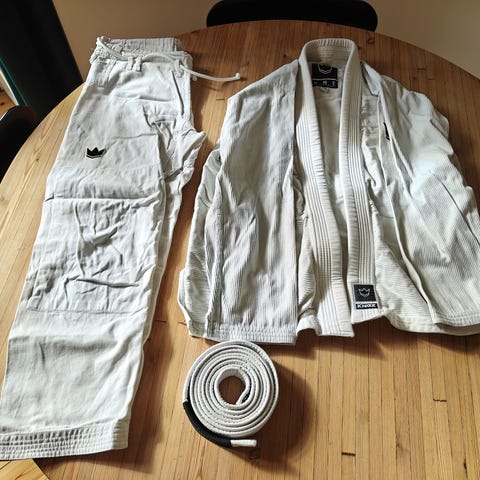 Jeg prøvede kræfter med Brasiliansk Jiu-Jitsu no-gi, men jeg fik kun brugt sættet to gange før jeg stoppede igen, fordi det ikke lige var noget mig. Derfor fremstår det praktisk talt helt nyt, og er selvfølgelig blevet vasket og har ligget pakket væk med silica gel.