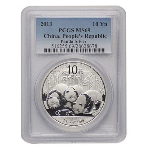 2014 var sidste år, hvor Panda sølvmønterne fra Kina indeholdt 1 oz (31,1 gram) rent sølv(999). De gik over til 30 gram i 2015.