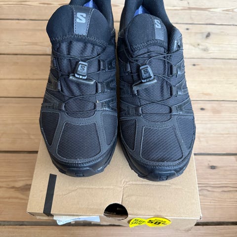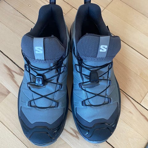 sælger et par helt nye Salomon X Ultra 5 GTX str. 43 1/3 i sort/Black/Asphalt/Castlerock. Jeg har gået 3 ture på 10-15 km og må konstatere at de er for små. Skoene er nærmest spritnye. Ny pris kr. 1399,- Kvittering haves.