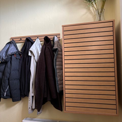 Doppler skoskab i eg finér. Vægophæng. Nypris kr 2.600. Ca 3 år gammelt - sælges for kr. 1.000
