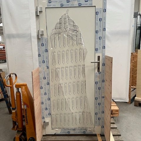Komplet med greb, cylinder og med nøgler ind og. Udv